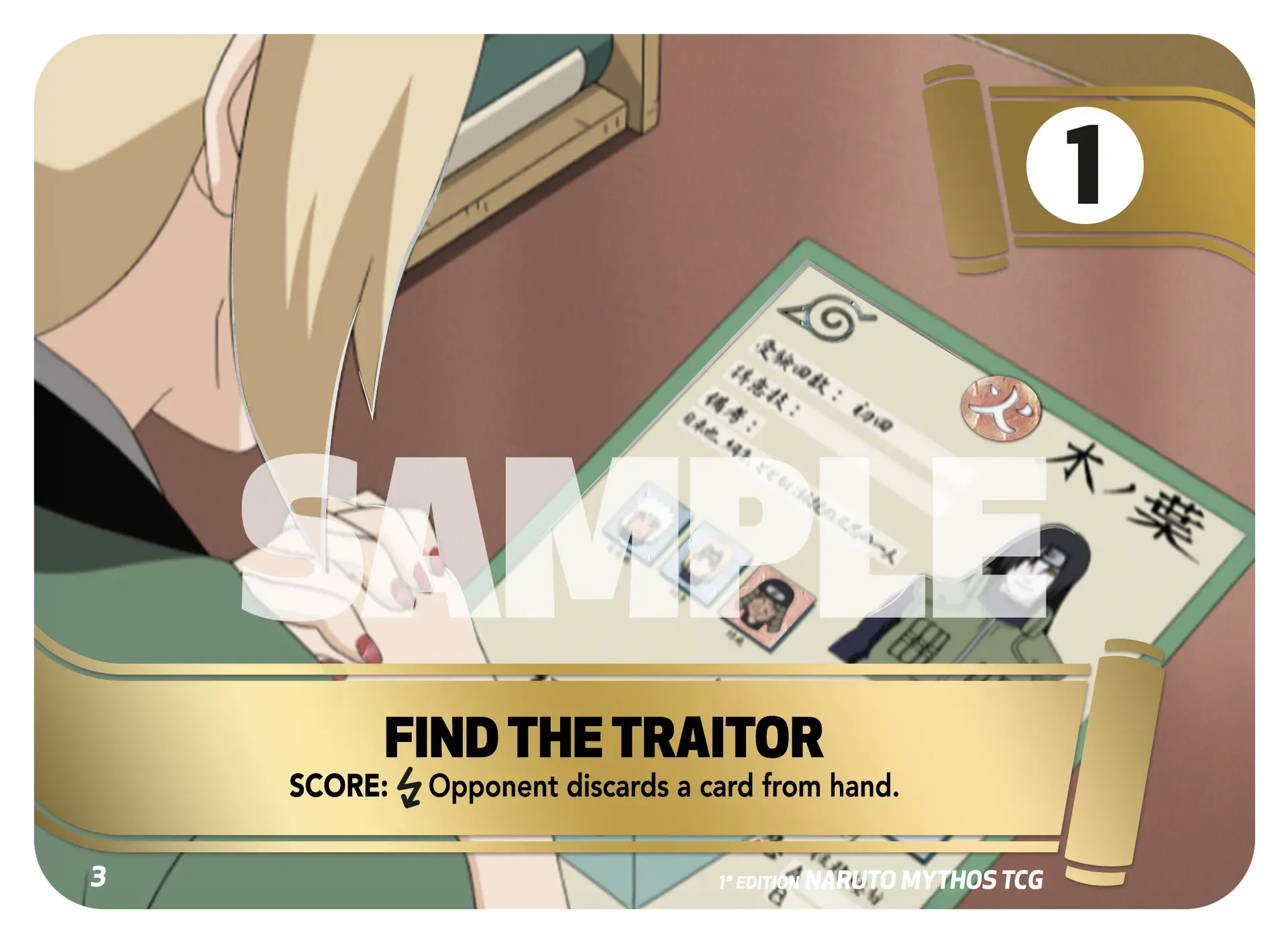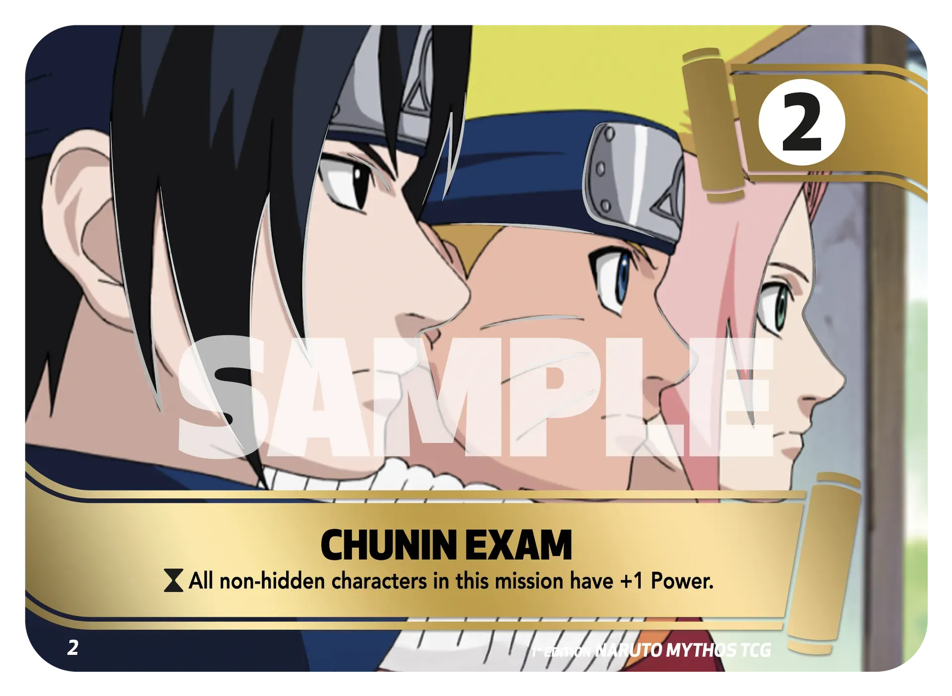 Dans Naruto Mythos TCG, les missions sont le moteur narratif dictant le rythme de la partie. Elles sont hiérarchisées par rangs (D, C, B, A), indiquant leur moment d'entrée en jeu : le Rang D au Round 1, le Rang A au Round 4.